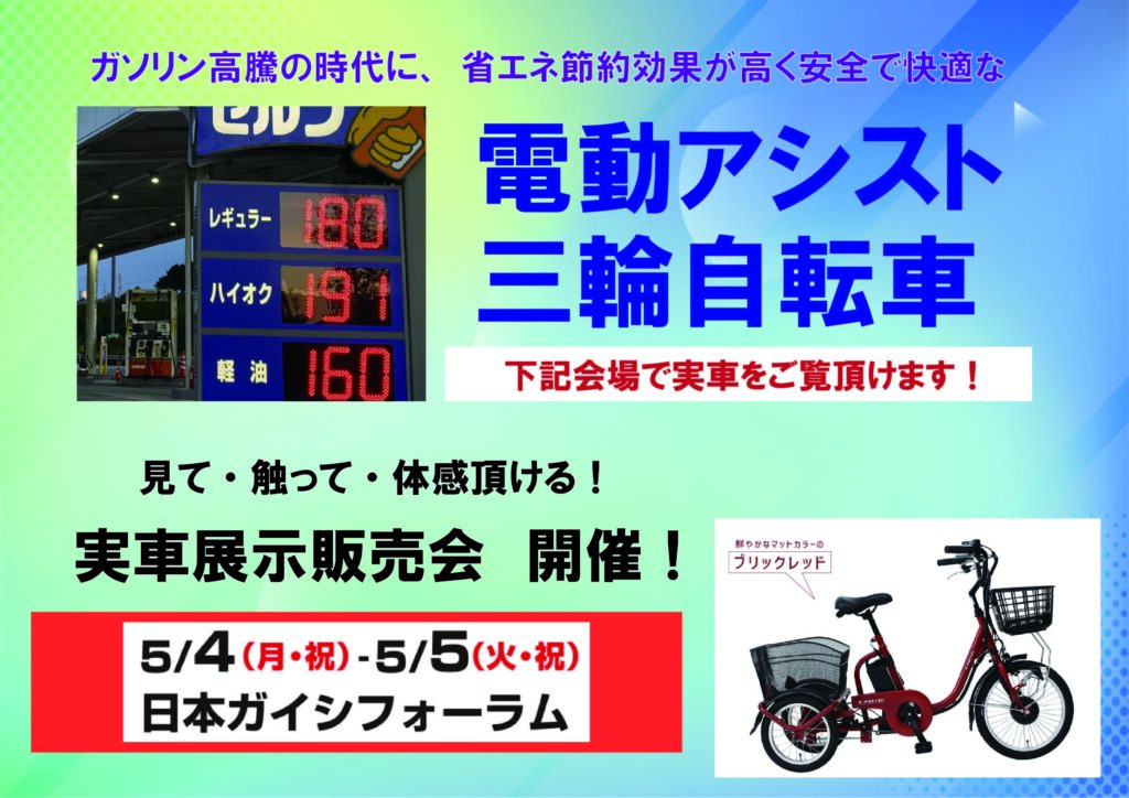 電動アシスト三輪自転車なら、省エネ・節約に最適です!